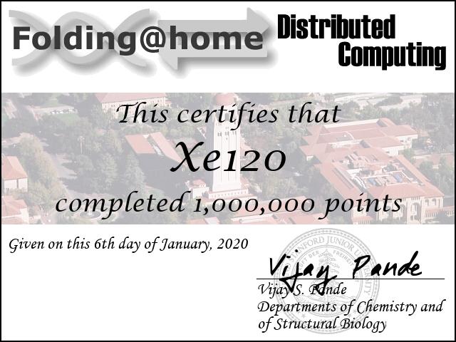 [Zebulon.fr]_longaripa (plieur depuis avril 2019) : x = 17 [Inpact]_eromog (plieur depuis 2013) : x = 10 le 05/01 : [Zebulon.fr]_Kana-chan (plieur depuis 2009, et maintenance des stats depuis fin 2017) : x = 80 phobos2308 (non-associé, plieur depuis 2018) : x = 18 Fo170 (non-associé, plieur depuis 2006) : x = 6 Pablobad (non-associé, plieur depuis le 12/12/2019) : x =1 (le certif est ici, mais il prend en compte plein de points pliés pour d'autres teams que l'AF...)